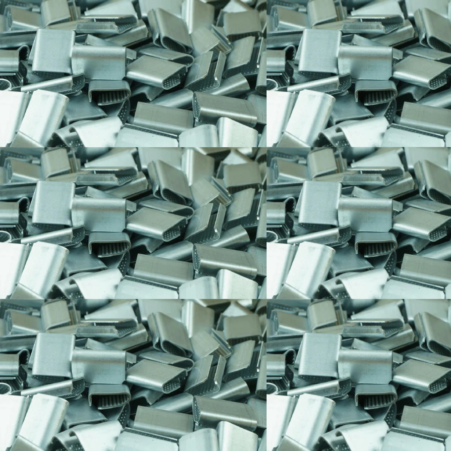 Sellos dentados metálicos de alta resistencia, compatible con zunchos plásticos de 1/2″. Diseñados para garantizar cierres firmes y seguros en cada embalaje, transporte y almacenamiento. Su forma punteada permite un agarre preciso, mejorando la fijación y evitando deslizamientos.